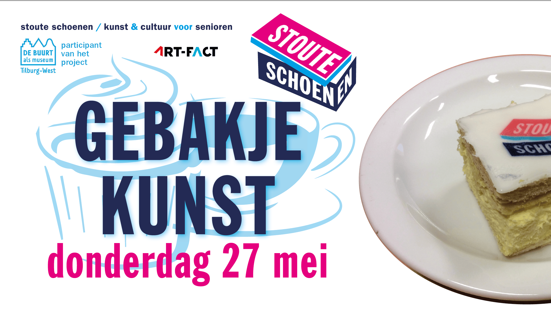 Heerlijk in het kwadraat! Gisteren heeft Stoute Schoenen – eindelijk – de luiken weer opengegooid met Gebakje Kunst. Een drukbezochte informatiemiddag met 30 enthousiastelingen en natuurlijk lekker gebak. Hoe we dat covid-proof deden? Met onze gebruikelijke creativiteit natuurlijk. Er was veel animo en het maximale aantal van 30 plaatsen was dan ook volledig gevuld. Wegens de covid-regels hebben we gebruik gemaakt van 2 naast elkaar gelegen ruimtes in WIJ West om iedereen op 1,5 meter een plek te bieden. We hebben ons verhaal, als onderdeel van 'De buurt als museum', in tweevoud opgevoerd. Met een rollend beeldscherm konden we van ruimte wisselen en spelen met de volgorde van het informatieprogramma in de beide ruimtes, waaronder het tonen van een video/powerpoint, onderling kennismaken en het blind tekenen. Al met al een zeer geslaagde middag met hele enthousiaste deelnemers. En de uitkomst? Volgende week al start een groep senioren met de cursus Schilderen & Collage.