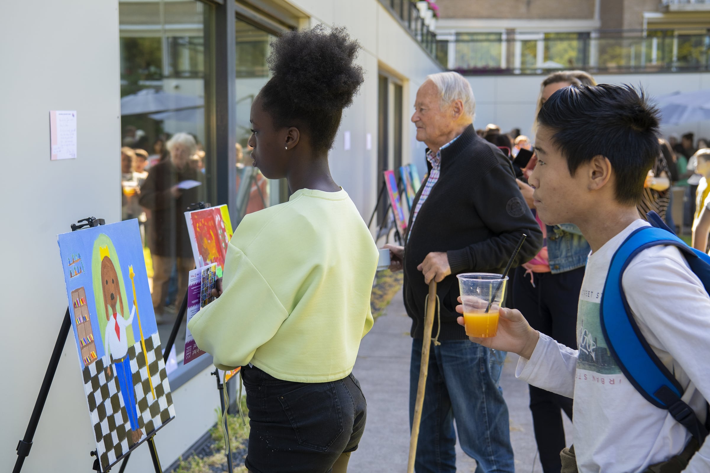 Hoera! Afgelopen vrijdag is De Buurt als Museum in Tilburg-West officieel en feestelijk geopend, met een rode loper, een reuzenschaar en applaus voor alle kunstenaars.
