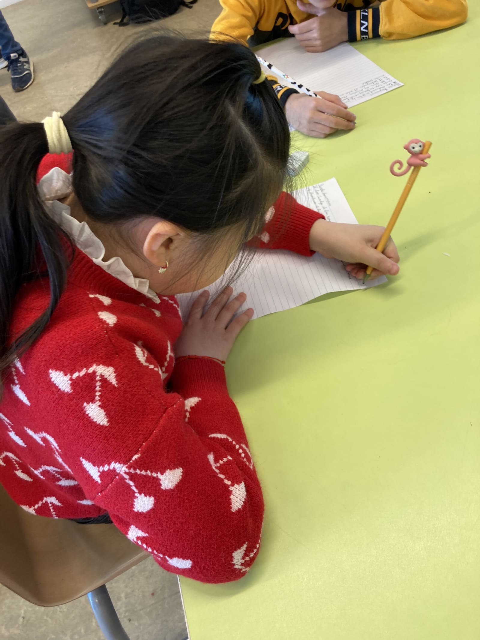In dit deel van de wijk wonen niet heel veel mensen die Chinees of Kroatisch spreken, maar Turks is wél heel handig hier. Dus schrijven een paar kinderen een Turkse brief.
