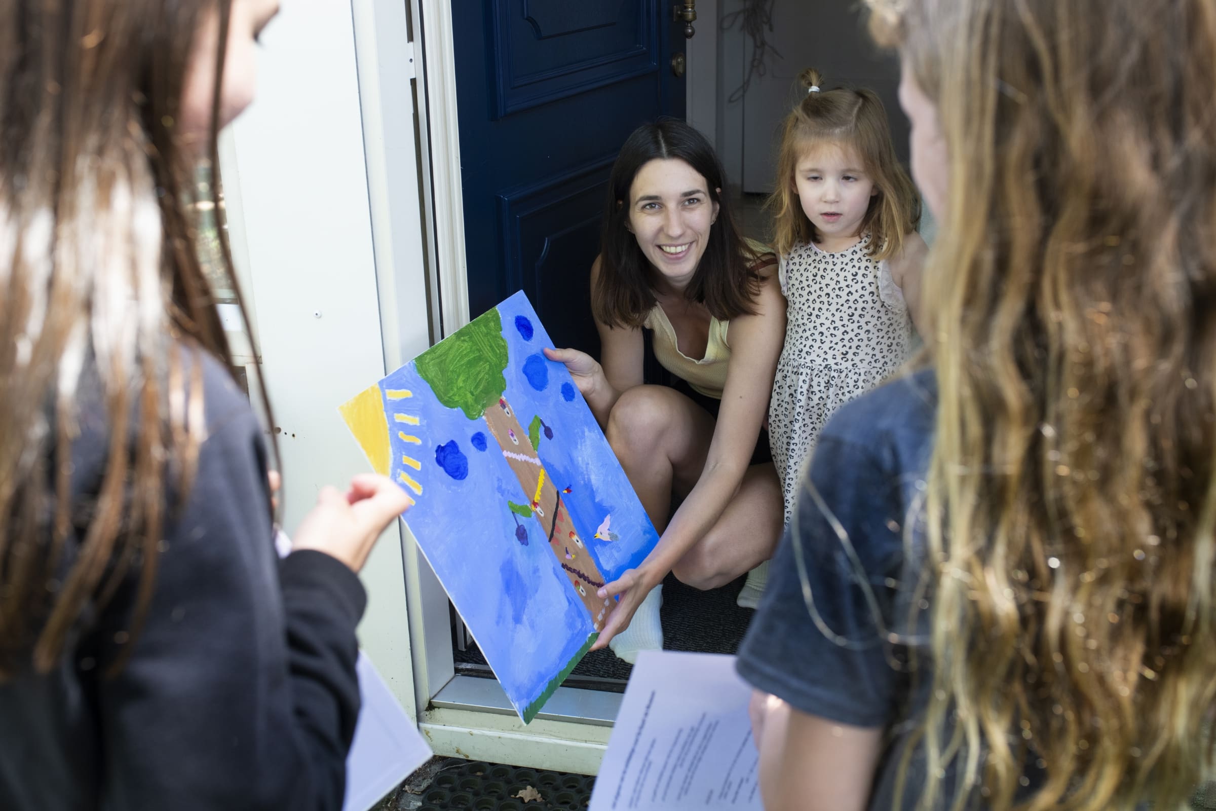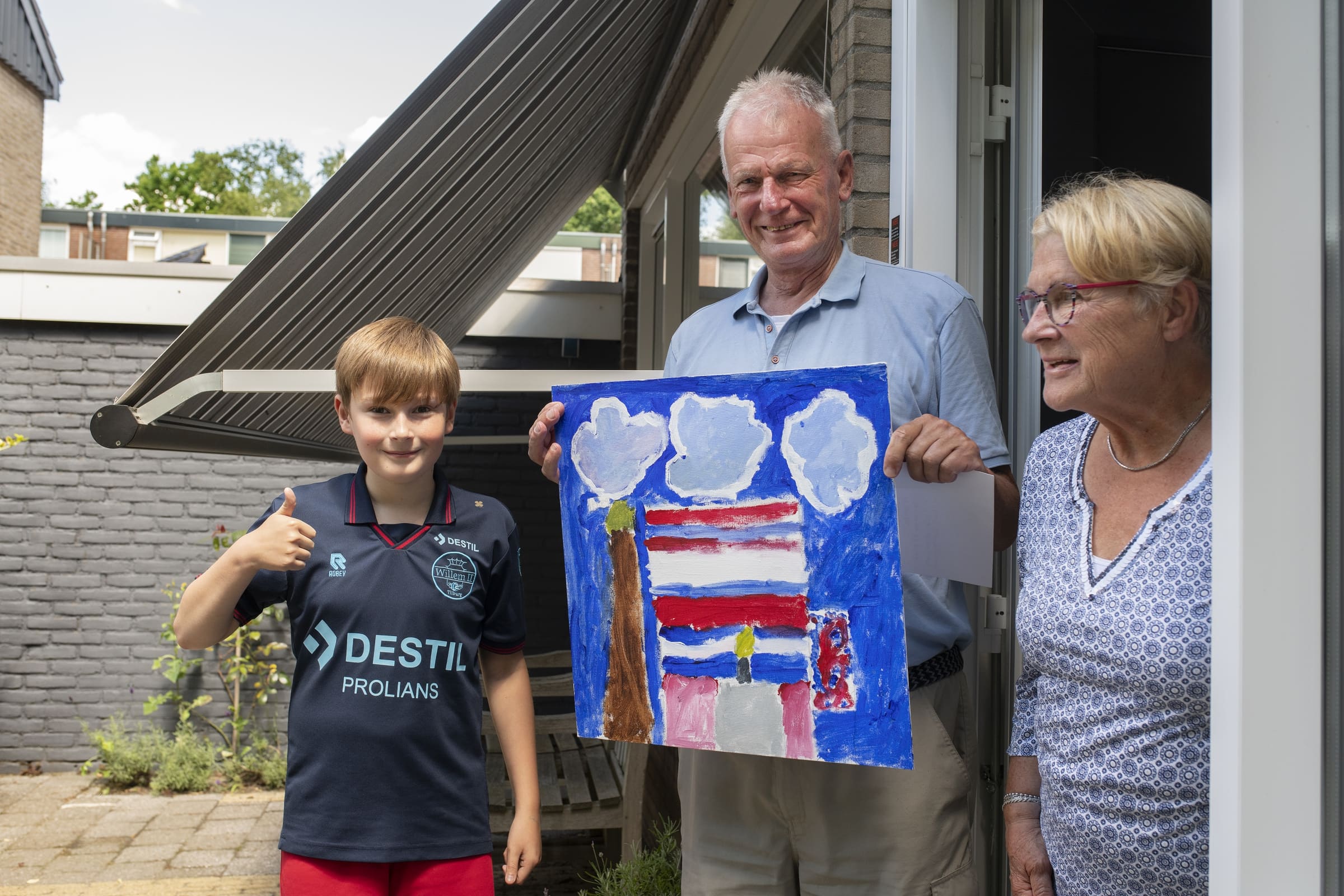 Niet alle bewoners waren thuis. Maar de kinderen hebben sowieso bij elkaar gezien hoe blij hun schilderij werd ontvangen! Soms met een zak snoep als beloning.